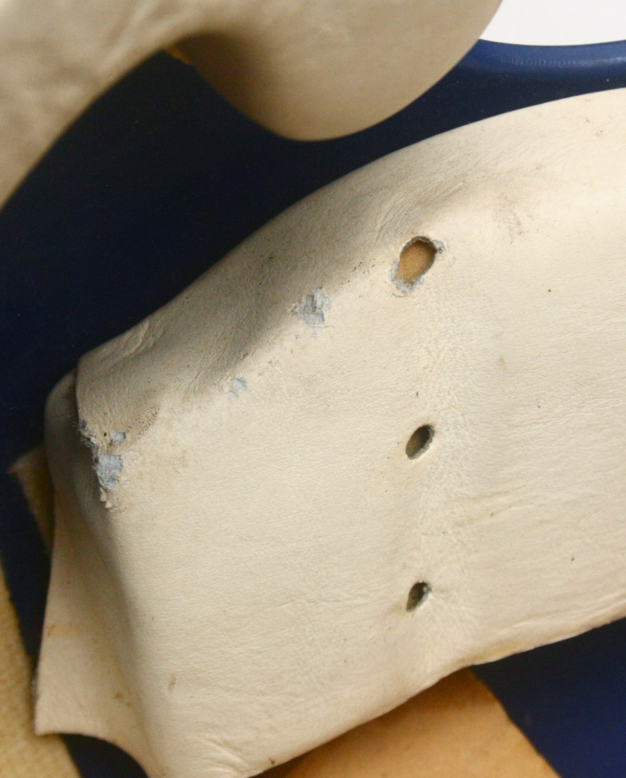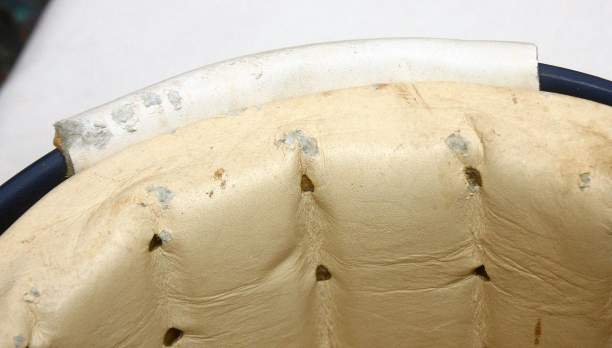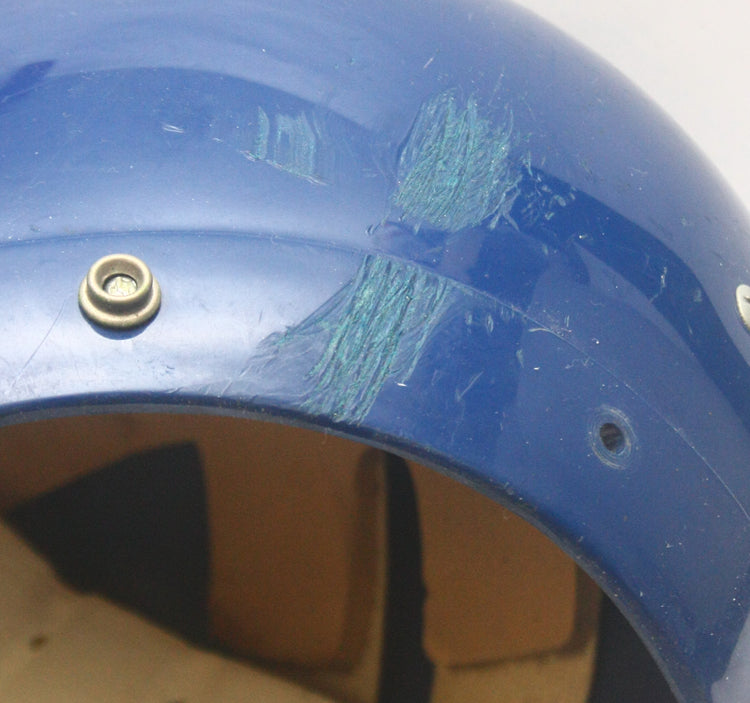 Ultra Rare Vintage 1980s Rawlings HND-9 Ridge Football Helmet. Comes with original Raw;lings leather jawpads. Missing back head pad assembly. Shell condition is good, a couple scrape marks on the back. Minor leather chipping on the leather pads.