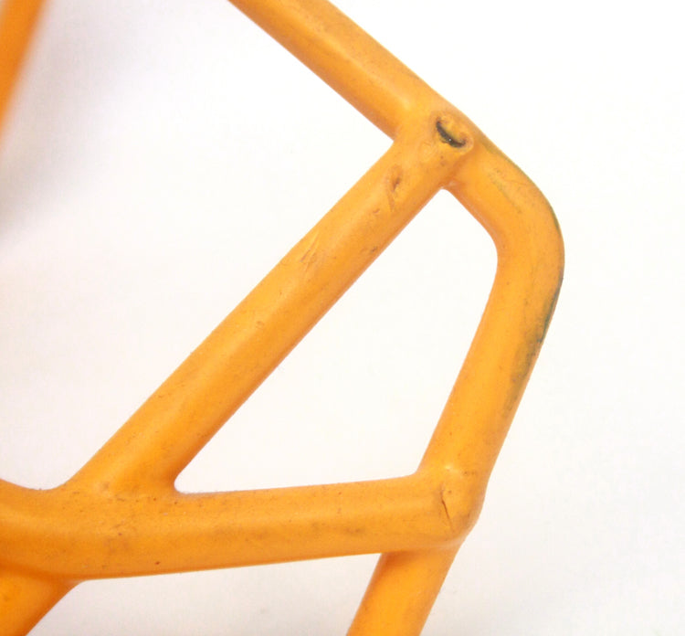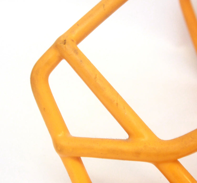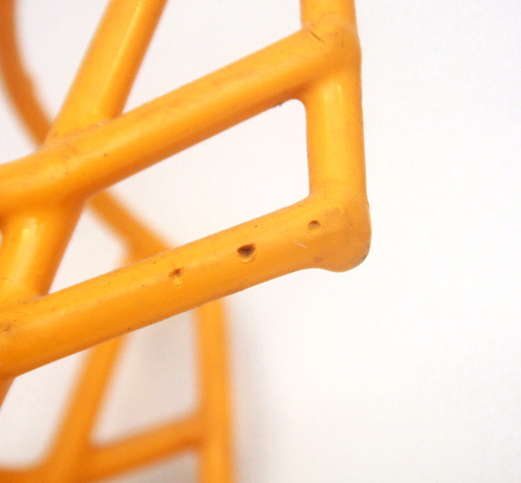 Vintage Game Used 1980s NOPO USFL Football Helmet Facemask - Yellow Gold - 3 Dot Large. Condition is used with wear and tear.